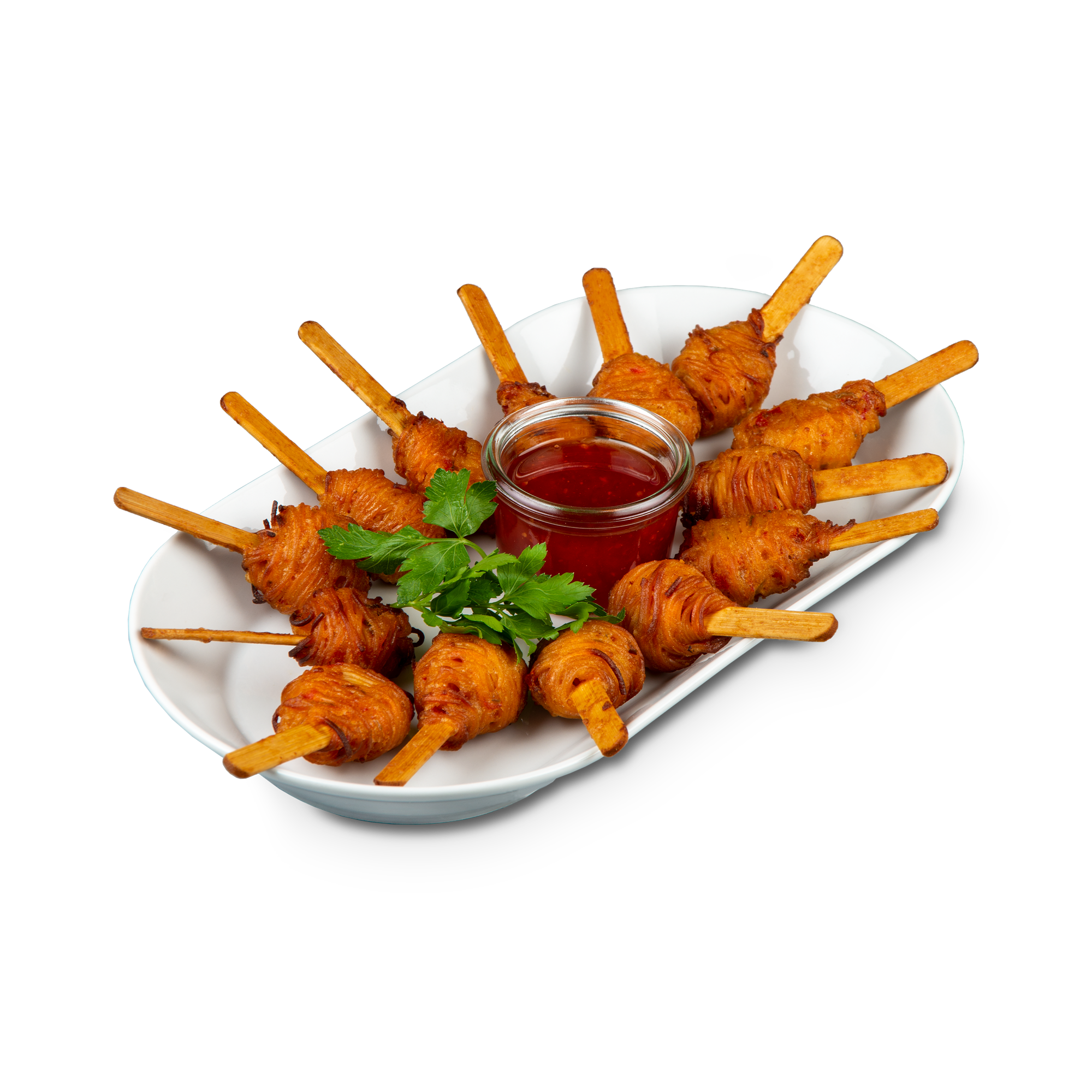 Sweet-Chili Dip: Zucker, Chilischoten, Wasser, Knoblauch, Branntweinessig (SULFIT), Salz, Tapiokastärke, Säureregulator: E330, E260, Stabilisator: E415, Konservierungsstoff: E202