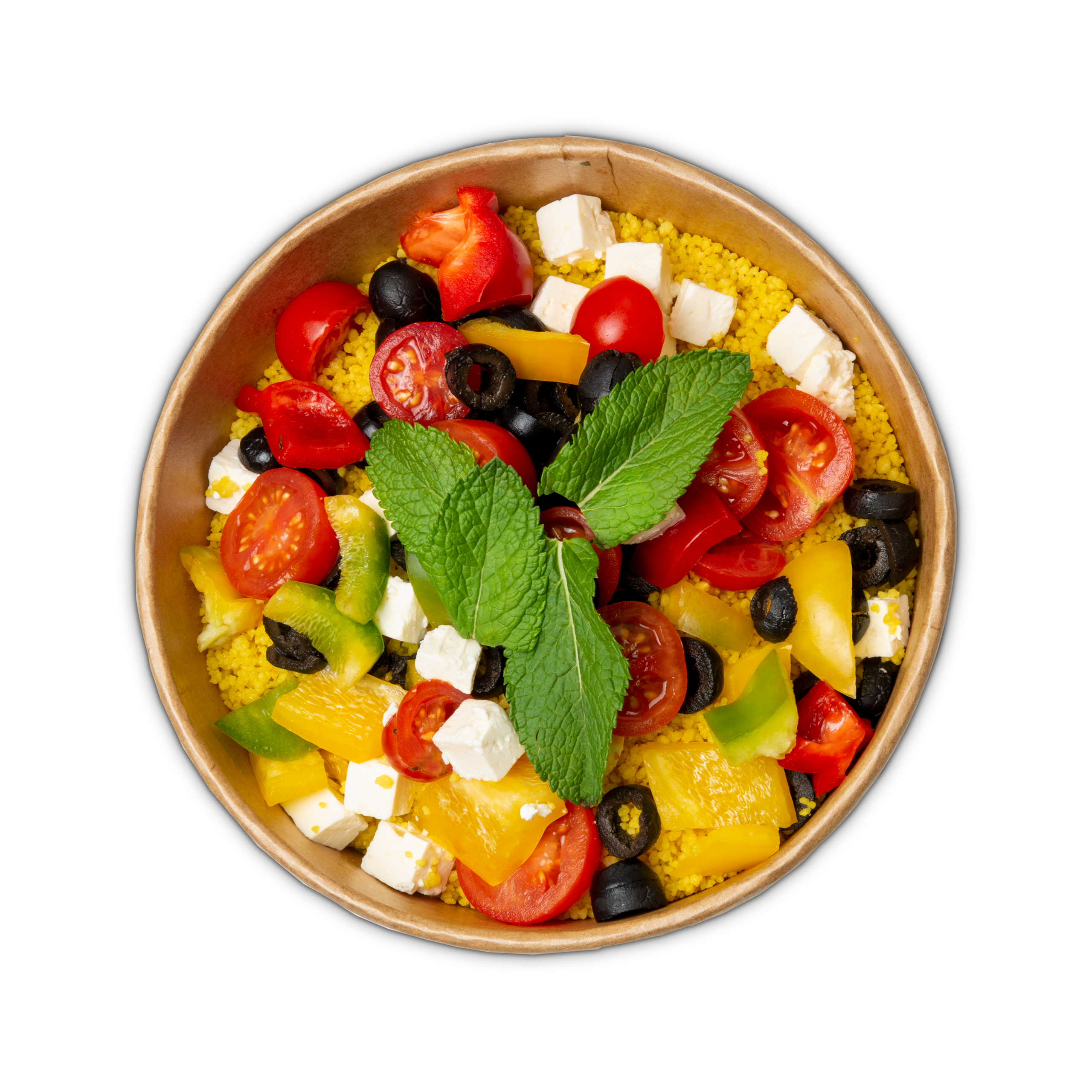 Mediterran, frisch und sättigend: Unser Couscous-Salat mit frischer Rohkost und Hirtenkäse ist die ideale, ausgewogene Ergänzung oder Alternative zu Haussalaten. Empfehlung: Balsamico Dressing